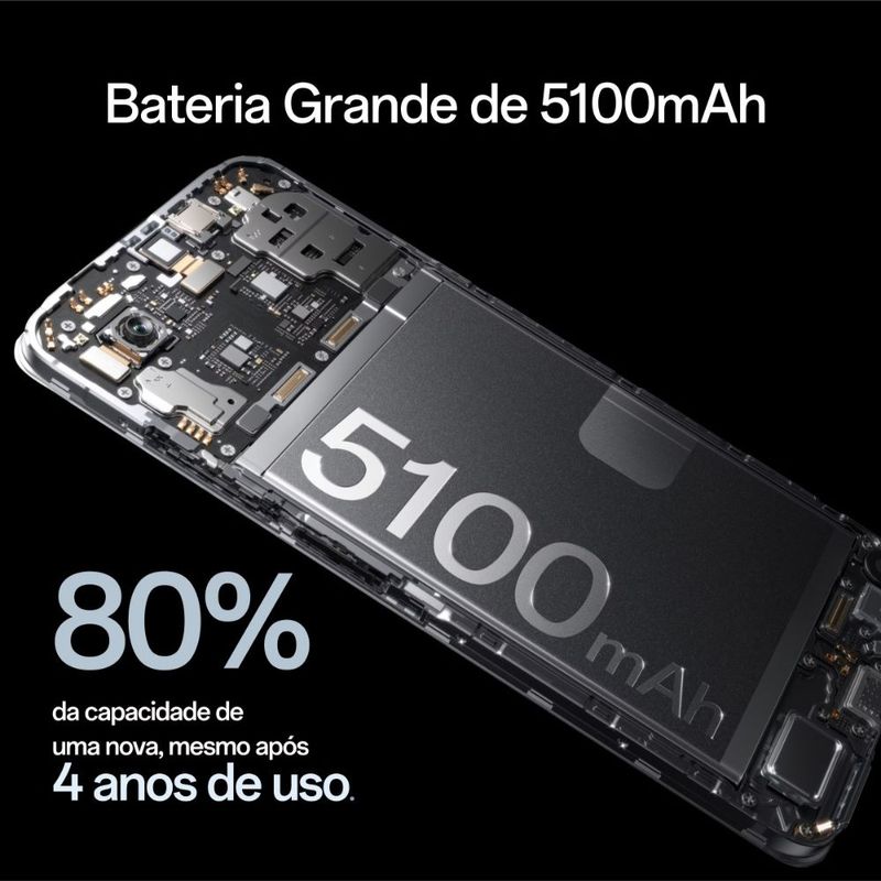 Bateria de 5100mAh com carregamento rápido de 45W: autonomia para o dia inteiro e recarga ultrarrápida, para você ficar mais tempo conectado e menos tempo na tomada.