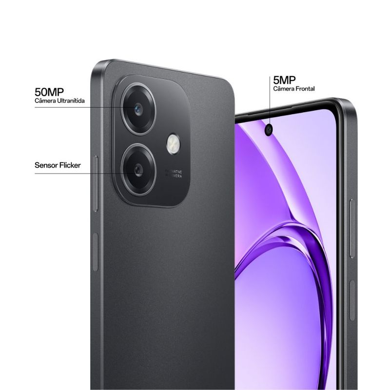 O OPPO A60 na cor preta traz um visual elegante e sofisticado, aliado à durabilidade e à potência que você precisa em todas as situações.